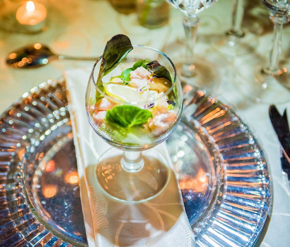 Prawn Cocktail served in a round martini glass on a bed of lettuce